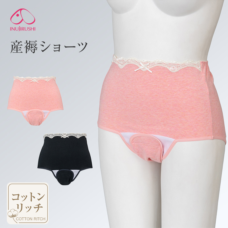 【メール便可】犬印本舗 産褥ショーツ 犬印 普通分娩用 M-L L-LL 大きいサイズ 出産準備 マタニティショーツ ピンク ブラック 前開き 産後 産褥 ショーツ