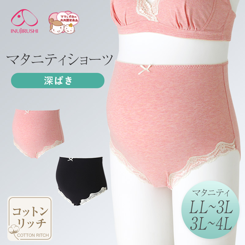 【メール便可】犬印本舗 マタニティ ショーツ LL〜3L 3L〜4L ピンク ブラック 下着 出産 入院 履き心地 綿 レース LL 3L 4L