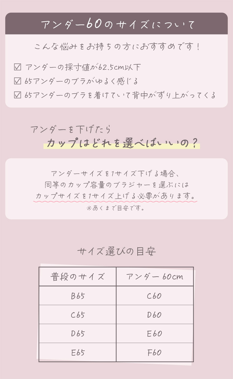 | ブランド | | intesucre[アンテシュクレ] | | サイズ | Bカップ(B65・B70・B75) Cカップ(C60・C65・C70・C75) Dカップ(D60・D65・D70・D75) Eカップ(E60・E65・E70・E75) Fカップ(F60・F65・F70・F75) | | カラー | | BK(ナイトブラック)、PI(フローレスピンク)、PU(シルキーパープル) | | 素 材 | | ポリエステル、ナイロン、その他 | | カップ | | パッド付き(取り外し可) | | ストラップ | | 取り外し不可 | | アンダー | | 後ろホック2段3列 | | 取扱い上注意 | | お洗濯は、必ず「取り扱い表示」にしたがってください。 |