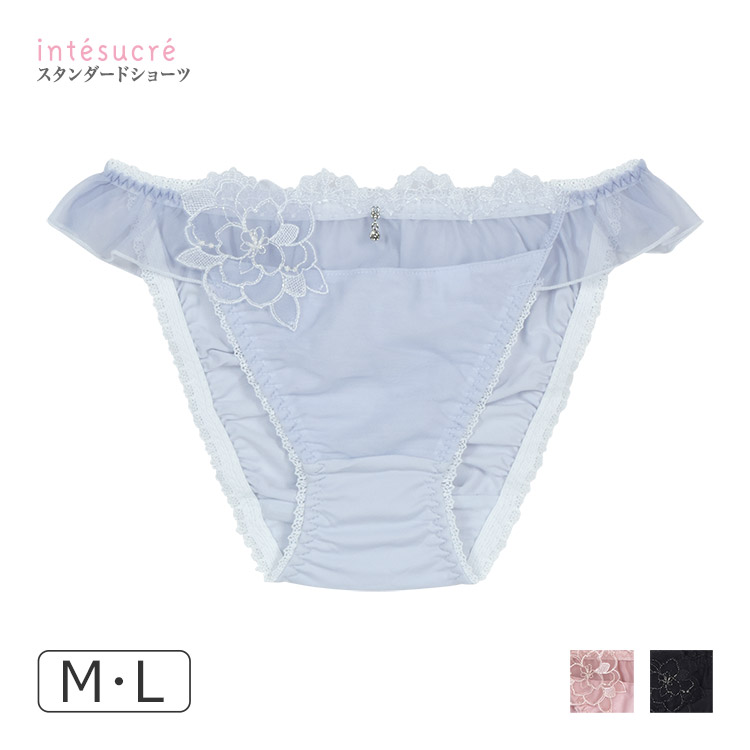 サイドにチュールフリルをあしらったフルバックショーツ。 フロントのスカラ刺繍とほんのり透けるチュールがエアリーなデザイン。 お花のアップリケが華やかさをプラス。 履き心地が良い2WAY素材で、足口にはずれにくいゴム仕様。 |