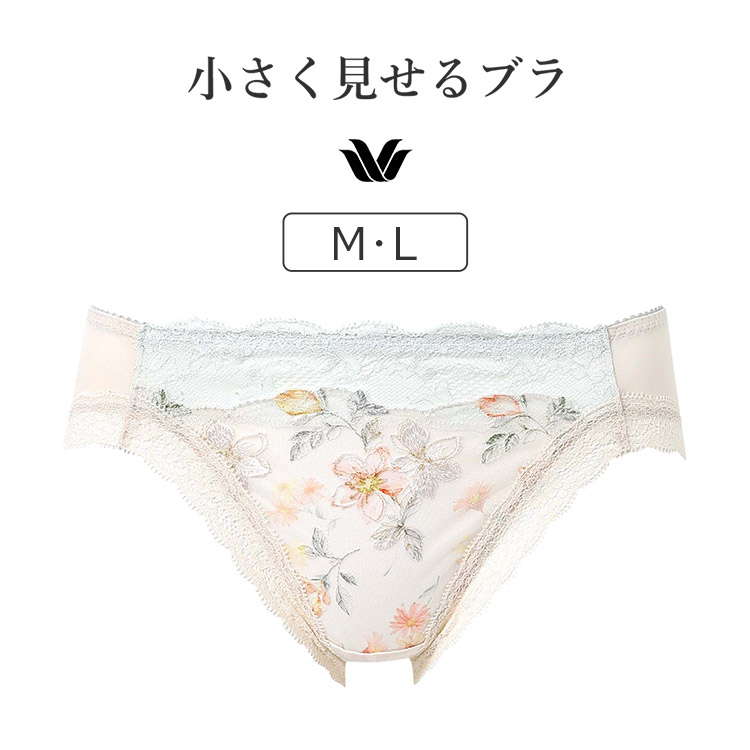 「小さく見せるブラ(BRB453)」とペアコーデが楽しめるショーツ。あさめのはきこみ丈で、すっきりとした印象です。可憐な花々をモチーフにしたレースが愛らしいロマンティックなデザイン。 ・はきこみ丈:あさめ |