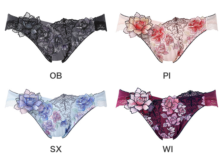 ・レースとアップリケには刺繍の柄に合わせたプリントレースを使用 ・レースとアップリケにはラメ糸を使用 ・フロントのアップリケにはスワロフスキー・クリスタルを使用 ・アップリケはバラの花をイメージ ・フロントは裏打ち付きで透けにくい