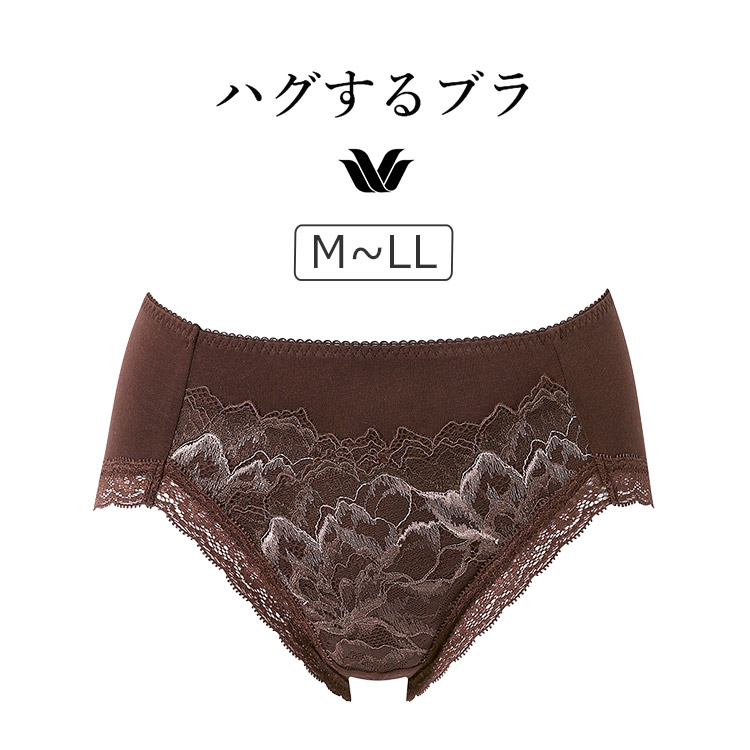 「ハグするブラ(BXB418)」「ハグするブラ コンパクトメイク(BXB318)」とペアコーデが楽しめるショーツ。バックは綿混素材で、安心感のあるラクなはきごこち。フロントには陰影が美しい繊細なレースをあしらい、ラグジュアリーな雰囲気に仕上げました。 ・はきこみ丈:ふつう |