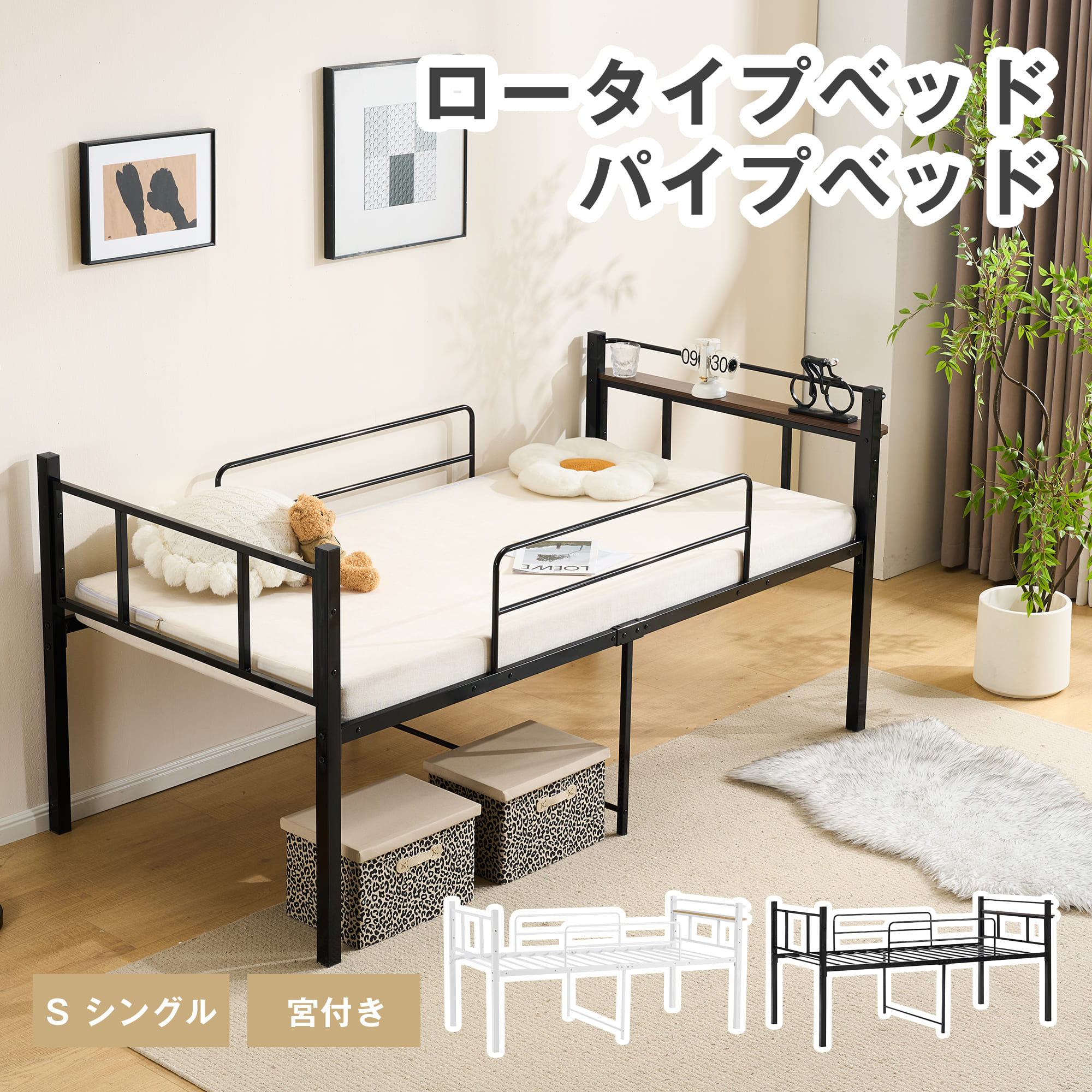 パイプベッド 多機能 宮 シングル ベッド ロータイプ 耐荷重120kg 下収納 高いベッド 北欧風 一人暮らし スチール 子供ベッド 大人ベッド 耐震 社員 学生寮