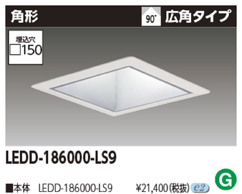 ダウンライト 埋込穴□150 角形 灯具のみ LEDD-186000-LS9 LEDユニット交換形 非調光タイプ 東芝ライテック