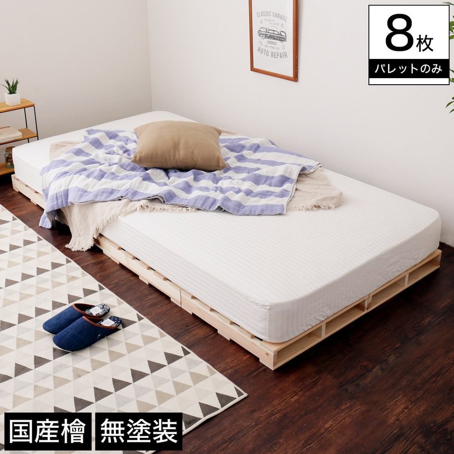 | インテリアの様々なアイディアに使える、国産檜を使用した、当社オリジナルの木製パレット。 本ページはシングルサイズのヘッドレスローベッドにもなる8枚セットでの販売です。 ★原材料には国産の天然檜を使用し、ひのきならではの芳香とリラックス効果が期待できます。 ★すのこ形状のため、通気性の良い置台にするも良し、市販のキャスターを取り付けて移動式テーブルにしたり、壁に掛けて壁飾りににしたりとアイディア次第で様々な使い方ができちゃいます! ★8枚以上でシングルサイズ、12枚以上でダブルサイズのパレットベッドになり、海外インテリアのようなラフでおしゃれな空間が簡単に実現できます! ★ブライワックスやオイルステインを塗ればまた違った雰囲気を楽しむこともできます。 ■サイズ(約): 1枚:幅48.5×奥行48.5×高さ8cm ■材質: 国産天然檜材(無塗装) ■組立:完成品 ■生産国:中国製 ■梱包:・梱包サイズ:68×49.5×50.5cm(19kg) ■重量(約):1枚あたり:2kg ■備考: ※原材料の檜は無塗装で防腐剤処理を施しておりませんので、ご自身で防腐剤を付与していない状態での外部でのご使用はお控えください。 |