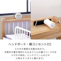 ヘッドボードにはスリムな棚とコンセント2口付き。眼鏡を置いたり、充電中のスマホの置き場にも使えます。枕元にあると便利な機能です。