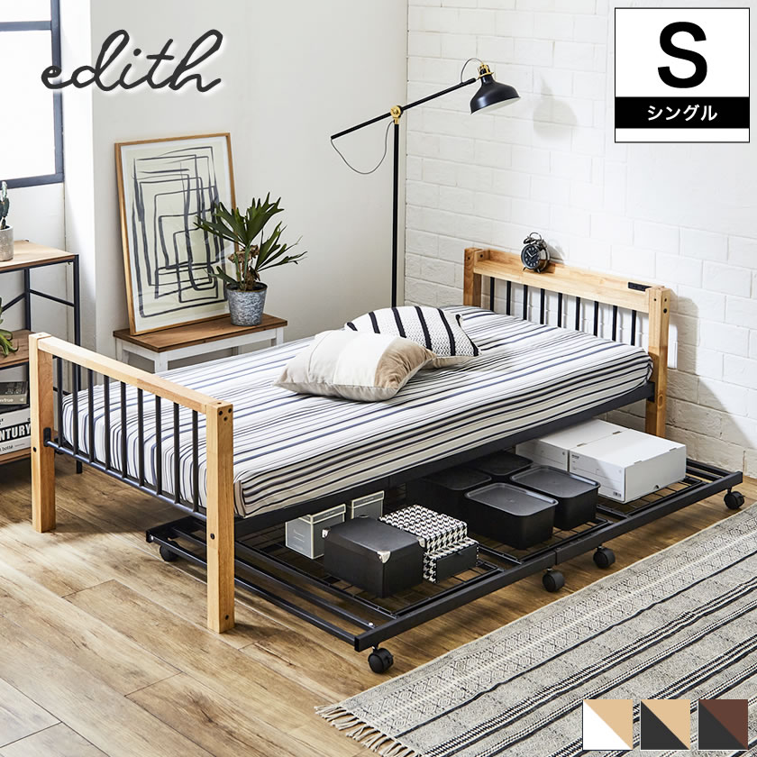 | Edith アイアン親子ベッドシングル 「 天然木」と「アイアン」異なるマテリアルを組み合わせたスタイリッシュなデザイン、棚コンセント付きのシングルベッド と キャスター付き子ベッド(シングルショート) の組み合わせ 子ベッドは、ベッド下収納スペースや、エキストラベッドとしても活躍します。キャスター付きなので出し入れもラクラク。Rollaway シンプルでスタイリッシュなデザイン アイアンツインベッド。 親子ベッド ツインベッド マットレスは別売です。 ■サイズ(約): シングルベッド:幅100.2× 奥行 212.3× 高 64.8cm 子ベッド:幅 97× 奥行 180.6× 高 10.8 cm ■材質: シングルベッド:ラバーウッド、スチール 子ベッド:スチール ■耐荷重(約):100kg ■組立:お客様組立品(2名200分) ■生産国:マレーシア ■梱包:※梱包サイズ(約):シングルベッド(2梱包) 2-1)94.5×48×15.1cm(18kg)、2-2)102.5×31×11.9cm(16kg) 子ベッド(1梱包) 1-1)98.5×49×11.5cm(16kg) ■備考: ※複数ご注文の場合、時間指定のご希望有無により配送業者が異なります。 そのため、ご注文後の時間指定追加はお受けできない場合がございますので予めご了承ください。 【BR】【NA】 ※商品画像は色合いや素材感が実際の商品と異なる場合がございます。 モニター・ディスプレイによっても写り方が変ります。予めご了承ください。 シングルベッド(親ベッド)ブラウン-ブラックには子ベッドカラー:ブラック シングルベッド(親ベッド)ナチュラル-ブラックには子ベッドカラー:ブラック シングルベッド(親ベッド)ナチュラル-ホワイトには子ベッドカラー:ホワイト |