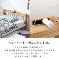 ヘッドボードにはスリムな棚とコンセント2口付き。眼鏡を置いたり、充電中のスマホの置き場にも使えます。枕元にあると便利な機能です。