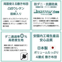 | 四層敷き布団 防ダニ・抗菌防臭中綿 12cm厚 セミシングル 長さ(約)195cmのベッドで使える敷き布団。ベッドには長すぎたり短すぎたりすることが多い「敷き布団」をベッドに使いやすい長さにつくりました。 プロファイルウレタン+ 固綿の2枚重ね。両面使えて寝心地2タイプのお布団です。ボリューム感があり、優れた体圧分散性と床付き感の軽減、カラダの沈み込み過ぎを抑え 快適快眠サポート 巻綿には清潔に安心してお使い頂けるように、防ダニ、SEKマーク(青)の基準をクリアした抗菌防臭 機能性繊維 (素材提供:帝人株式会社)マイティトップ(R)2 中わたを使用しています。固綿をふんわりやわらかい中綿でくるみ、ふっくらとしたボリュームのお布団に仕上げました。国内の工場で生産された日本製 敷き布団 4層式敷ふとん ベッドはもちろん、フローリングや畳に敷いてお使いいただけます。 ■サイズ(約): 幅80×長さ195×厚12cm ■材質: 側生地:ポリエステル100% 巻綿:抗菌防臭防ダニ加工中綿マイティトップ2(素材提供:帝人株式会社)(重量:約0.7kg) 固綿:ポリエステル100% (重量:約1.1kg)、厚さ:約5cm ウレタン(厚:5/3cm)プロファイル ■組立:完成品 ■生産国:日本製 ■梱包:1個口:72×21×46cm ■備考: 【IV】【GY】 ※商品画像は色合いや素材感が実際の商品と異なる場合がございます。 モニター・ディスプレイによっても写り方が変ります。予めご了承ください。 ※敷布団の厚さは 圧縮梱包でのお届け商品の為、復元の具合により多少の個体差が生じます。予めご了承ください。 |