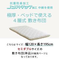| ◆ベッド使える・4層式敷き布団・長さ195cm 関連商品リンク◆ ●固綿2枚入り,シキボウ「ノンスタック加工」中わた入り ・セミシングル 80×195 / ・シングル 97×195cm /・セミダブル 120×195cm /・ダブル 140×195cm ●固綿+プロファイルウレタン入り,テイジン マイティトップ(R)2中綿入り ・セミシングル 80×195 / ・シングル 97×195cm /・セミダブル 120×195cm /・ダブル 140×195cm |