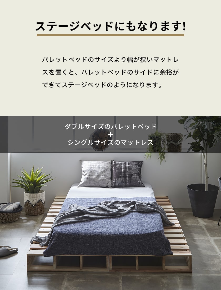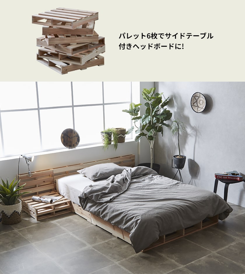 元々、倉庫などでの積載のために下に敷かれるパレットを、ベッドフレームとして活用してはどうかというアイディアから生まれたパレットベッド。