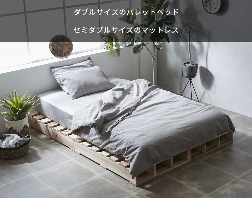 元々、倉庫などでの積載のために下に敷かれるパレットを、ベッドフレームとして活用してはどうかというアイディアから生まれたパレットベッド。