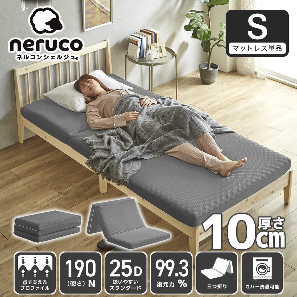 | ネルコンシェルジュオリジナルの三つ折りウレタンマットレス「密度:25D(スタンダードタイプ)」コスパのよいバランス設計です。 プロファイルウレタンを採用し、カラダをしっかり支えます。 安定感のある寝心地を実現。寝返りがしやすく、理想的な体圧分散で自然な寝姿勢をサポートします。 10cmの適度な厚みで、ベッドやフローリング、すのこマットの上でも底付き感がなく快適に使用できます。 側生地は通気性の良いメッシュ素材を採用し、蒸れにくく快適な環境をキープします。さらにL型ファスナー使用で開閉可能、中材を取り外して洗濯できお手入れも簡単。いつでも清潔に保てます。 また、三つ折り&コンパクト設計で、収納や持ち運びに便利。ロフトベッドや来客用マットレス、新生活や一人暮らしにも最適な一枚です。 ■保証期間:1年 ■サイズ(約):・外寸:幅97×長さ195×厚さ10cm ■材 質:・側生地:ポリエステル100% ・中材:ウレタンフォーム(重量:約3.5kg) (密度:25D/硬さ:190N/復元率:99.3%) ■生産国:中国 ■重量(約):4.3kg ■梱 包:1個口:34×34×53cm(5.2kg) ■備考: |