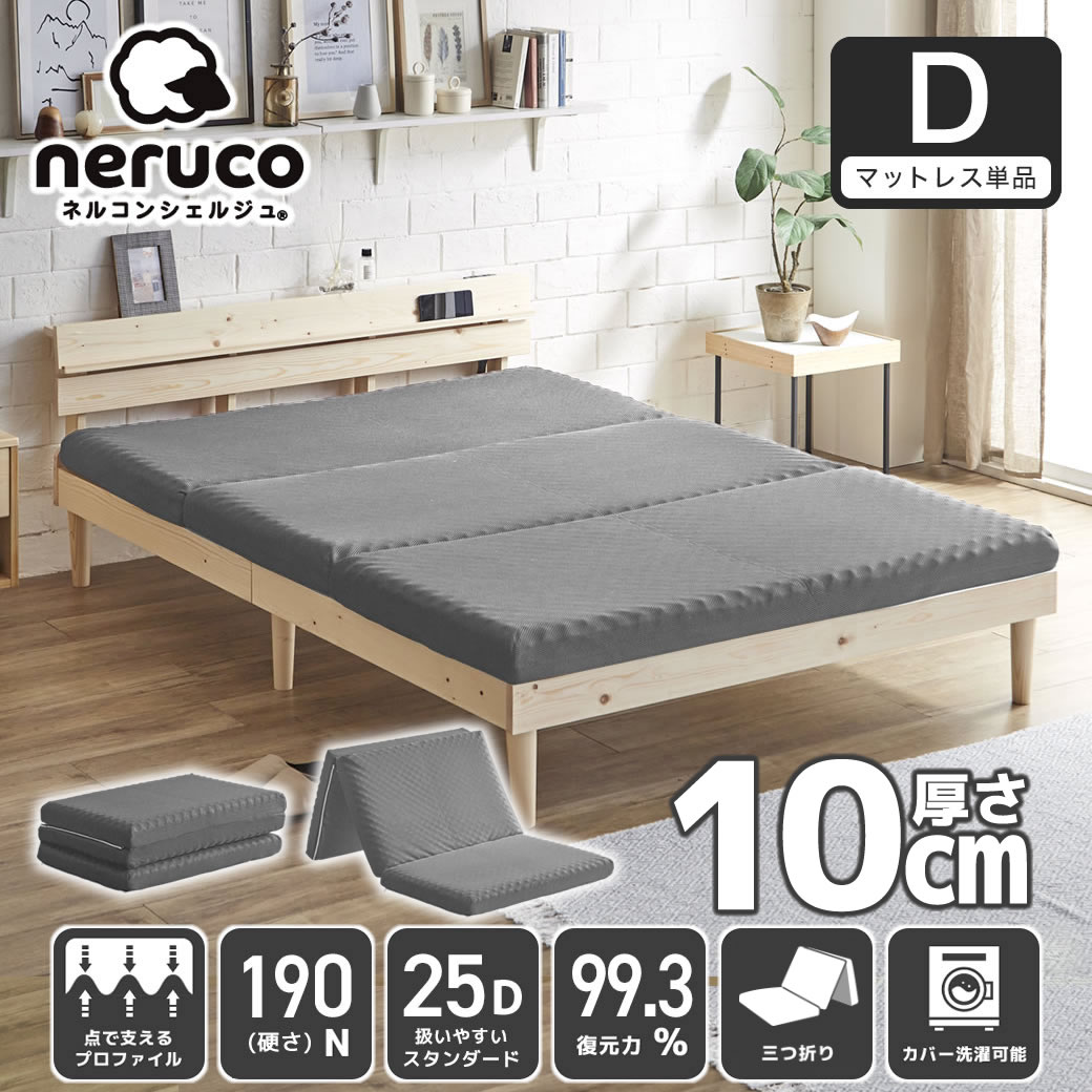 | ネルコンシェルジュオリジナルの三つ折りウレタンマットレス「密度:25D(スタンダードタイプ)」コスパのよいバランス設計です。 プロファイルウレタンを採用し、カラダをしっかり支えます。 安定感のある寝心地を実現。寝返りがしやすく、理想的な体圧分散で自然な寝姿勢をサポートします。 10cmの適度な厚みで、ベッドやフローリング、すのこマットの上でも底付き感がなく快適に使用できます。 側生地は通気性の良いメッシュ素材を採用し、蒸れにくく快適な環境をキープします。さらにL型ファスナー使用で開閉可能、中材を取り外して洗濯できお手入れも簡単。いつでも清潔に保てます。 また、三つ折り&コンパクト設計で、収納や持ち運びに便利。ロフトベッドや来客用マットレス、新生活や一人暮らしにも最適な一枚です。 ■保証期間:1年 ■サイズ(約):・外寸:幅140×長さ195×厚さ10cm ■材 質:・側生地:ポリエステル100% ・中材:ウレタンフォーム(重量:約5.1kg) (密度:25D/硬さ:190N/復元率:99.3%) ■生産国:中国 ■重量(約):6.4kg ■梱 包:1個口:34×34×73cm(7.8kg) ■備考: |