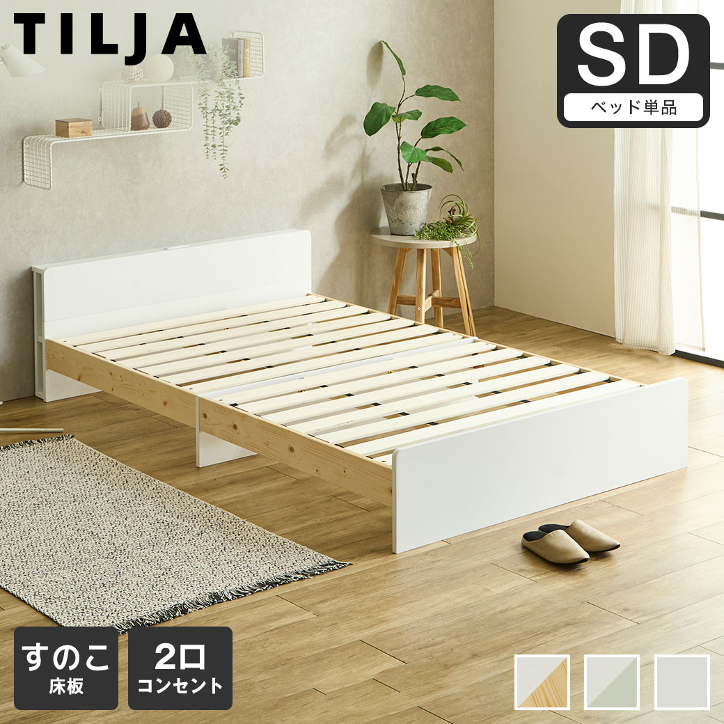 ベッド ティリア すのこベッド 棚付きベッド セミダブル ベッドフレーム 木製 棚付き コンセント ベッド単品 ツートンカラー