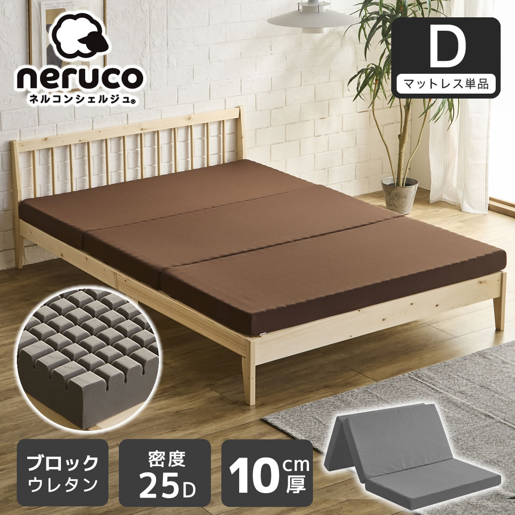 | ネルコンシェルジュオリジナル・ブロックウレタンを使用した三つ折りウレタンマットレス。コスパが良い「スタンダードタイプ:25D」。ブロックカットウレタンがカラダに優しくフィットし荷重を受け止め体圧を分散。 高反発・かための寝心地で安定感のある寝心地を実現。寝返りがしやすく、理想的な体圧分散で自然な寝姿勢をサポートします。 10cmの適度な厚みで、ベッドやフローリング、すのこマットの上でも底付き感がなく快適に使用できます。 側生地は通気性の良いメッシュ素材を採用し、蒸れにくく快適な環境をキープします。さらにコの字型に開閉するファスナー仕様で、中材を取り外して洗濯できお手入れも簡単。いつでも清潔に保てます。 また、三つ折り&コンパクト設計で、収納や持ち運びに便利。ロフトベッドや来客用マットレス、新生活や一人暮らしにも、豊富なサイズ展開でファミリーでのご使用にも最適な一枚です。 ■保証期間:1年 ■サイズ(約):・外寸:幅140×長さ195×厚さ10cm ■材 質:・中材:ウレタンフォーム (密度:25D/硬さ:190N/復元率:96.1%) ・側生地:ポリエステル100% ■生産国:中国 ■重量(約):6.75kg ■梱 包:1個口:38×38×74cm(8.8kg) ■備考:・本製品は圧縮梱包された状態でお届けいたします。開封後に製品厚み・サイズが縮んでいる場合がございますが素材と形状の特性であり、数時間から数日かけて元の厚みに戻ります。 ・開封直後は、ウレタン特有のにおいを感じることがあります。気になる場合は、風通しの良い場所でしばらく陰干ししてください。 ・一度開封すると、元の状態には戻せません。 【GY】【BR】※納期表示の異なる商品を同時に購入した場合、納期の遅い商品とまとめて発送する場合がございます。予めご了承ください。 |