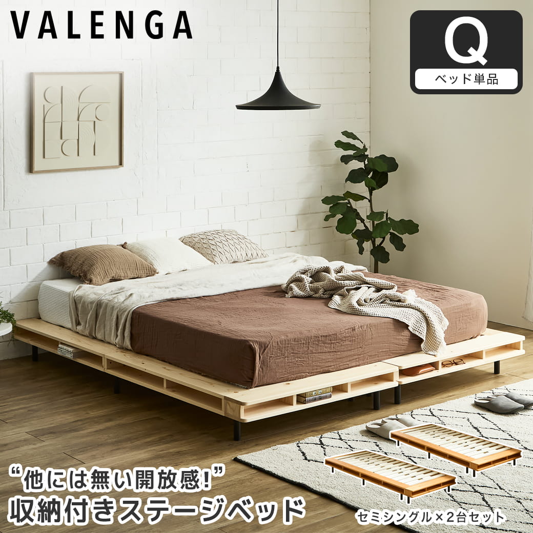 | 片側サイドとフットにシェルフが付いた当社オリジナルのコーナーステージベッド「ヴァレンガ」。 北欧天然木とマットなアイアン脚を組み合わせた他には無いスタイリッシュなデザインが目を惹く、おしゃれで開放感のあるローベッドです。 シェルフは読みかけの本やスマートフォン、小物を置く収納・ディスプレイスペースとして大活躍します。 2台並べると両側サイドにシェルフが付いたワイドベッドとしても使え、夫婦やカップルでのご使用もおすすめです。 デザイン性と機能性を兼ね備えた洗練されたフォルムで、毎日の寝室をワンランク上のリラックス空間へと導きます。 ■保証期間:1年 ■サイズ(約):・ベッド外寸:幅92.5×長さ209×高さ22cm(×2台) ・ベッド床面有効内寸:幅80×長さ195cm(×2台) ■材 質:・ベッド:天然木パイン材(ラッカー塗装)、LVL、スチール ■耐荷重(約):150kg ■組 立:お客様組立品(大人2人約30分) ■生産国:中国 ■梱 包:・ベッド:2個口:(2-1)103×36×26cm(25.6kg)(2-2)103×36×26cm(25.6kg) ■備考:【BR】【NA】 |