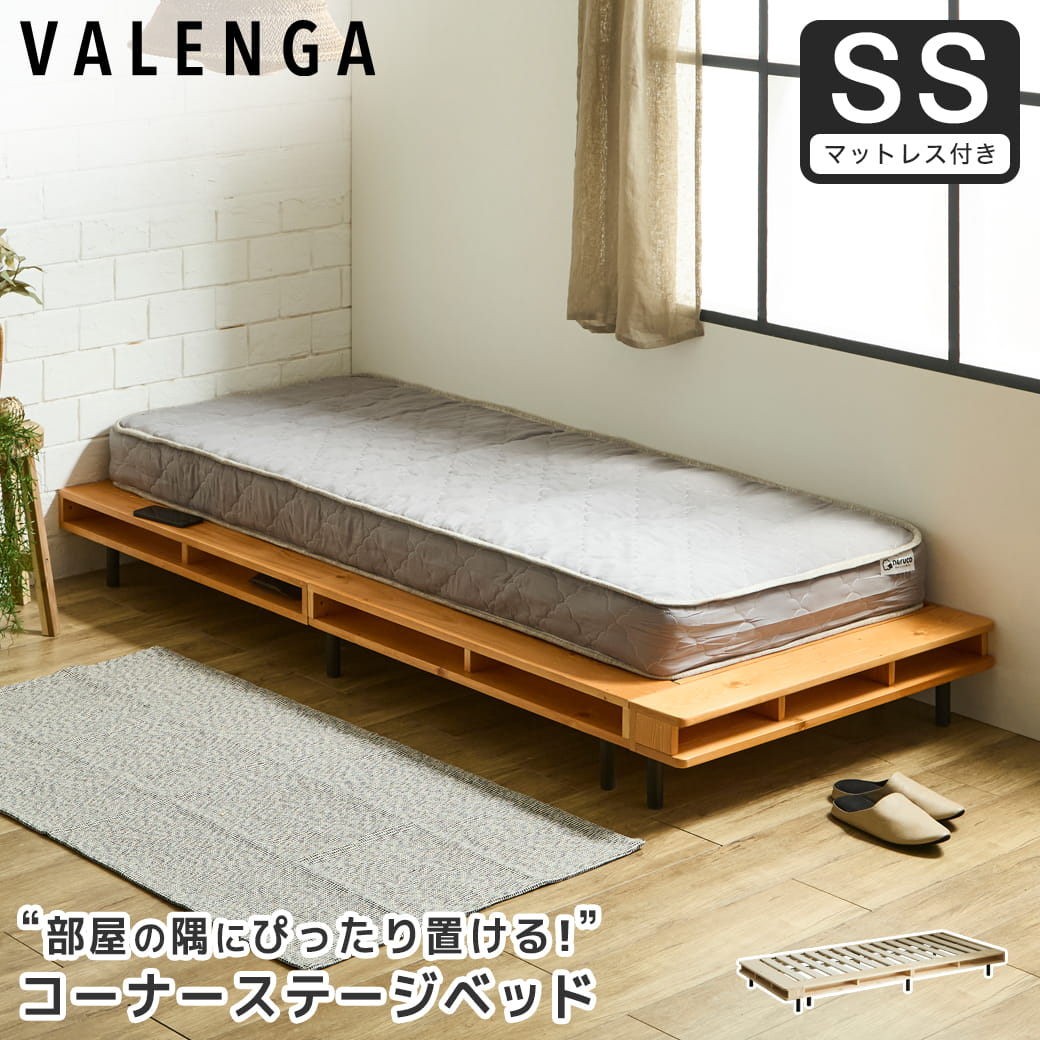 | 片側サイドとフットにシェルフが付いた当社オリジナルのコーナーステージベッド「ヴァレンガ」。 北欧天然木とマットなアイアン脚を組み合わせた他には無いスタイリッシュなデザインが目を惹く、おしゃれで開放感のあるローベッドです。 シェルフは読みかけの本やスマートフォン、小物を置く収納・ディスプレイスペースとして大活躍します。 2台並べると両側サイドにシェルフが付いたワイドベッドとしても使え、夫婦やカップルでのご使用もおすすめです。 デザイン性と機能性を兼ね備えた洗練されたフォルムで、毎日の寝室をワンランク上のリラックス空間へと導きます。 ■保証期間:1年 ■サイズ(約):・ベッド外寸:幅92.5×長さ209×高さ22cm ・ベッド床面有効内寸:幅80×長さ195cm ・マットレス外寸:幅80×長さ195×厚さ15cm ■材 質:・ベッド:天然木パイン材(ラッカー塗装)、LVL、スチール ・マットレス:ポリエステル100%、ポケットコイル、ウレタン、フェルト ■耐荷重(約):150kg ■組 立:お客様組立品(大人2人約30分) ■生産国:中国 ■梱 包:・ベッド:1個口:(1-1)103×36×26cm(25.6kg) ・マットレス:1個口:(1-1)25×25×92cm(14kg) ■備考:【BR】【NA】 |