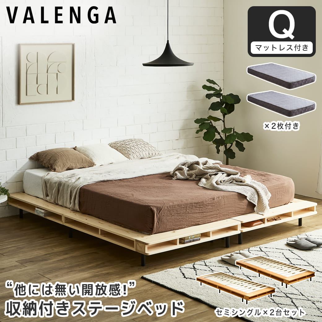 | 片側サイドとフットにシェルフが付いた当社オリジナルのコーナーステージベッド「ヴァレンガ」。 北欧天然木とマットなアイアン脚を組み合わせた他には無いスタイリッシュなデザインが目を惹く、おしゃれで開放感のあるローベッドです。 シェルフは読みかけの本やスマートフォン、小物を置く収納・ディスプレイスペースとして大活躍します。 2台並べると両側サイドにシェルフが付いたワイドベッドとしても使え、夫婦やカップルでのご使用もおすすめです。 デザイン性と機能性を兼ね備えた洗練されたフォルムで、毎日の寝室をワンランク上のリラックス空間へと導きます。 ■保証期間:1年 ■サイズ(約):・ベッド外寸:幅92.5×長さ209×高さ22cm(×2台) ・ベッド床面有効内寸:幅80×長さ195cm(×2台) ・マットレス外寸:幅80×長さ195×厚さ15cm(×2枚) ■材 質:・ベッド:天然木パイン材(ラッカー塗装)、LVL、スチール ・マットレス:ポリエステル100%、ポケットコイル、ウレタン、フェルト ■耐荷重(約):150kg ■組 立:お客様組立品(大人2人約30分) ■生産国:中国 ■梱 包:・ベッド:2個口:(2-1)103×36×26cm(25.6kg)(2-2)103×36×26cm(25.6kg) ・マットレス:2個口:(2-1)25×25×92cm(14kg)(2-2)25×25×92cm(14kg) ■備考:【BR】【NA】 |