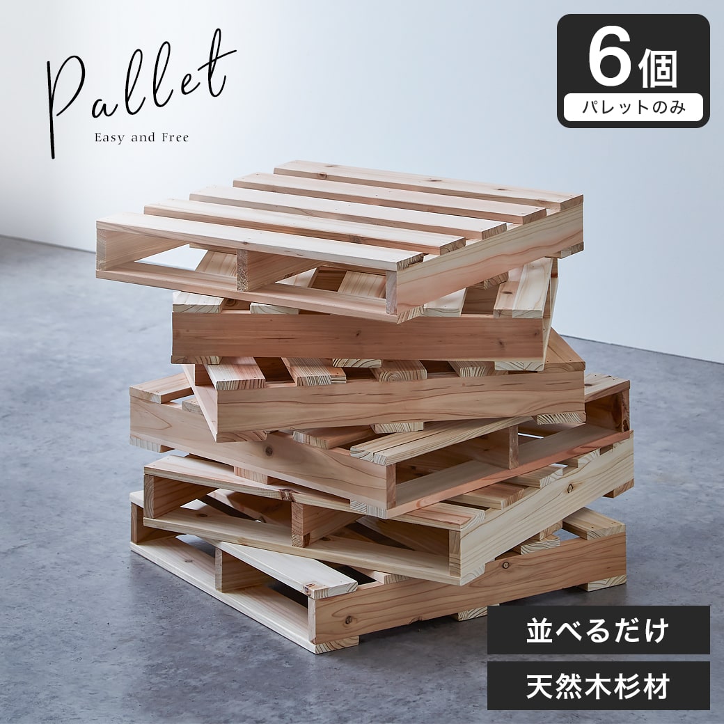 | インテリアの様々なアイディアに使える、当社オリジナルの木製パレット。 本ページはベンチやローソファにもなる6枚セットです。 ★原材料には素朴な風合いの天然木杉材を使用しました。 ★すのこ形状のため、通気性の良い置台にするも良し、市販のキャスターを取り付けて移動式テーブルにしたり、壁に掛けて壁飾りににしたりとアイディア次第で様々な使い方ができちゃいます! ★8枚並べればシングルサイズ、12枚あればダブルサイズのパレットベッドになり、海外インテリアのようなラフでおしゃれな空間が簡単に実現できます! ★ブライワックスやオイルステインを塗ればまた違った雰囲気を楽しむこともできます。 ■サイズ(約): 1枚:幅48.5×奥行48.5×高さ8cm ■材 質: 天然木杉材(無塗装) ■組立:完成品 ■生産国:中国製 ■梱包:・梱包サイズ:51.5×49.5×50.5cm(9.6kg)(6枚1セット) ■重量(約):1枚あたり:1.6kg ■備考: ※原材料の杉は無塗装で防腐剤処理を施しておりませんので、ご自身で防腐剤を付与していない状態での外部でのご使用はお控えください。 |