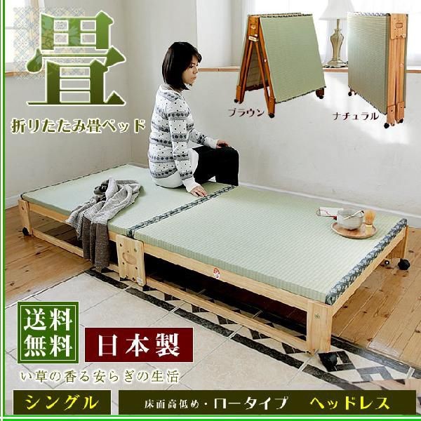 折りたたみベッド 畳ベッド ヘッドレス シングル キャスター付き 日本製