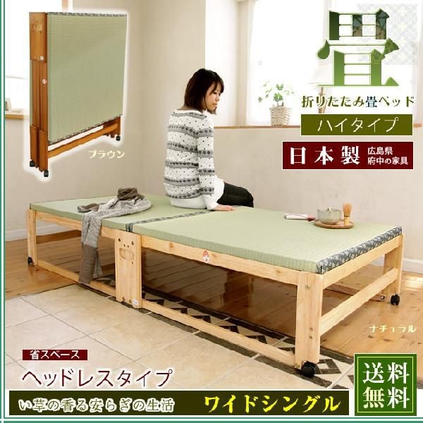折りたたみベッド 畳ベッド ヘッドレス ハイタイプ ワイドシングル