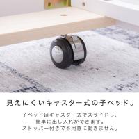 マットレスを載せた状態で子ベッドを親ベッド下に収納する場合、厚さ14cm以内のマットレスをご使用ください。その際、掛け布団や枕等は親ベッド上へ移動させてください。