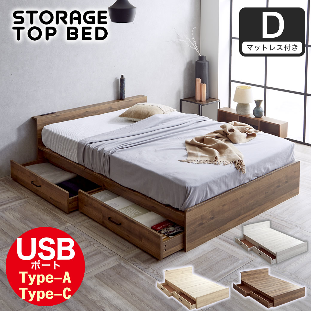 | 当社オリジナル 収納付きステージベッドStorage top bed(ストレージトップベッド) 段差のないフラットなステージタイプの床面が特徴的。デザイン性に優れたモダンな雰囲気の収納ベッドです。キャスター付きの2杯引き出し付き。ベッド下の空間を収納スペースとして有効活用。スマートな棚には、便利なUSBポート(Type-A、Type-C)各1口、コンセント2口の計4口搭載。スマートフォン、タブレット、スマートウォッチやゲーム機など。お手持ちのガジェット類の充電を枕元で。 機能性とデザイン性を両立した収納付きのステージベッド。フレーム表面には耐水性や耐熱性、耐摩耗性に優れた「メラミン化粧板」を採用。 20cm厚ポケットコイルマットレスセット サイズ:ダブル ■サイズ(約):・ベッド本体:幅140×奥行207.6×高57(床面高:27)cm 引出し外寸/内寸:幅97(92.4)×長さ40.6(37)×高さ20.2(9.5)cm ・マットレス:幅140×長さ195×厚さ20cm ■材質:・ベッドフレーム:MDF(メラミン樹脂シート張り化粧板)、LVLすのこ床板 マットレス:表面生地:ポリエステル100% 、ニット織 、側面生地:3Dメッシュ、中材:ポケットコイル、ウレタン、白色ピュアフェルト ■耐荷重(約):150kg ■組立:お客様組立品(2名約50分) ■生産国:中国 ■梱包:・ベッド梱包数:3個口:(3-1)145×33×8.5cm(21.2kg)(3-2)102×40×10cm(14.5kg)(3-3)145.5×45×15cm(42.5kg)・マットレス梱包数:1個口※衛生・コンパクト 圧縮梱包でお届けいたします。 ■備考: ※組立時はプラスドライバーをご用意ください。 |
