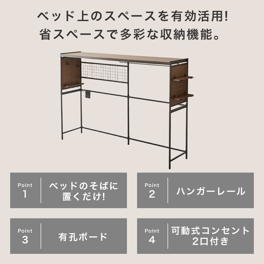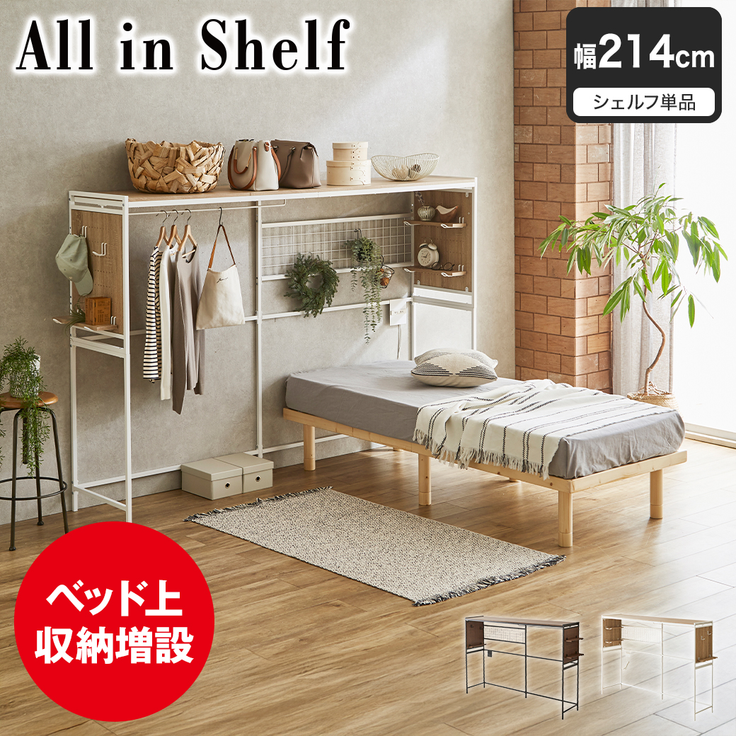 | 今まで空いていたベッド上の空間を収納スペースとして有効活用できるシェルフ、 All in Shelf。 シェルフには多くの収納機能があります。有孔ボードやメッシュパネルで自由自在な収納アレンジ。お気に入りの服をたくさん掛けられるハンガーレール。 付属品として有孔ボードに設置できる可動棚やフックが付いています。ベッドは縦置き、横置きどちらでもOK!ベッド周りのレイアウトも自由自在です。 また、可動式のコンセントユニットを備え、電気製品の置き場所に困ることなく、効率的な使用が可能です。 ■保証期間:1年 ■サイズ:幅214×高さ149×奥行50cm ■材 質:スチール、MDF(シート貼り) ■組 立:お客様組立品(大人2人約60分) ■生産国:マレーシア ■梱 包:1個口:115×56×21.5cm(34.1kg) ■備考:ベッドの長さや幅によっては本製品の下に設置できない可能性がございますので、ご購入の前にサイズの確認をお願いいたします。 |