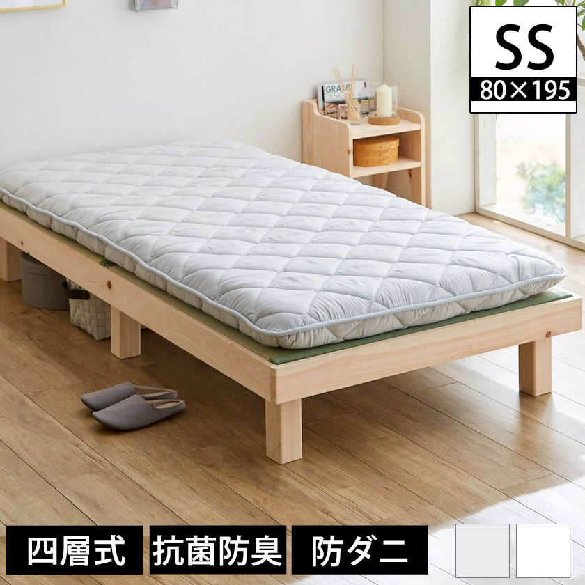 | 四層敷き布団 防ダニ・抗菌防臭中綿 12cm厚 セミシングル 長さ(約)195cmのベッドで使える敷き布団。ベッドには長すぎたり短すぎたりすることが多い「敷き布団」をベッドに使いやすい長さにつくりました。 プロファイルウレタン+ 固綿の2枚重ね。両面使えて寝心地2タイプのお布団です。ボリューム感があり、優れた体圧分散性と床付き感の軽減、カラダの沈み込み過ぎを抑え 快適快眠サポート 巻綿には清潔に安心してお使い頂けるように、防ダニ、SEKマーク(青)の基準をクリアした抗菌防臭 機能性繊維 (素材提供:帝人株式会社)マイティトップ(R)2 中わたを使用しています。固綿をふんわりやわらかい中綿でくるみ、ふっくらとしたボリュームのお布団に仕上げました。国内の工場で生産された日本製 敷き布団 4層式敷ふとん ベッドはもちろん、フローリングや畳に敷いてお使いいただけます。 ■サイズ(約): 幅80×長さ195×厚12cm ■材質: 側生地:ポリエステル100% 巻綿:抗菌防臭防ダニ加工中綿マイティトップ2(素材提供:帝人株式会社)(重量:約0.7kg) 固綿:ポリエステル100% (重量:約1.1kg)、厚さ:約5cm ウレタン(厚:5/3cm)プロファイル ■組立:完成品 ■生産国:日本製 ■梱包:1個口:72×21×46cm ■備考: 【IV】【GY】 ※商品画像は色合いや素材感が実際の商品と異なる場合がございます。 モニター・ディスプレイによっても写り方が変ります。予めご了承ください。 ※敷布団の厚さは 圧縮梱包でのお届け商品の為、復元の具合により多少の個体差が生じます。予めご了承ください。 |