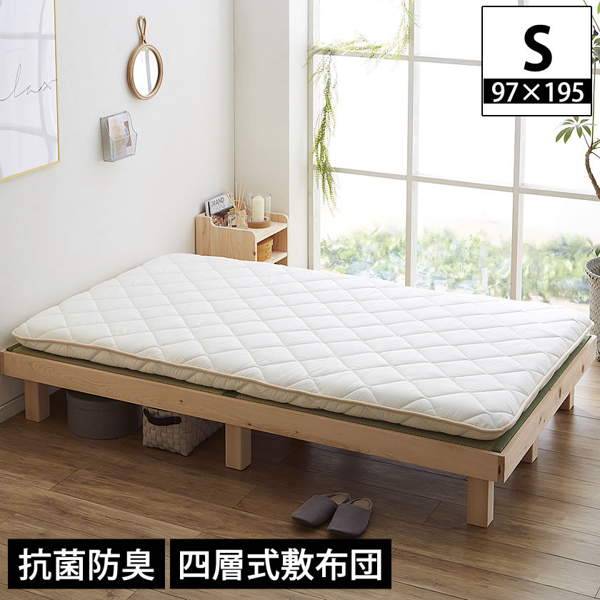 | ◆ベッド使える・4層式敷き布団・長さ195cm 関連商品リンク◆ ●固綿2枚入り,シキボウ「ノンスタック加工」中わた入り ・セミシングル 80×195 / ・シングル 97×195cm /・セミダブル 120×195cm /・ダブル 140×195cm ●固綿+プロファイルウレタン入り,テイジン マイティトップ(R)2中綿入り ・セミシングル 80×195 / ・シングル 97×195cm /・セミダブル 120×195cm /・ダブル 140×195cm |