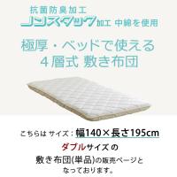 | ◆ベッド使える・4層式敷き布団・長さ195cm 関連商品リンク◆ ●固綿2枚入り,シキボウ「ノンスタック加工」中わた入り ・セミシングル 80×195 / ・シングル 97×195cm /・セミダブル 120×195cm /・ダブル 140×195cm ●固綿+プロファイルウレタン入り,テイジン マイティトップ(R)2中綿入り ・セミシングル 80×195 / ・シングル 97×195cm /・セミダブル 120×195cm /・ダブル 140×195cm |