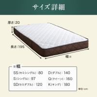 | ネルコンシェルジュオリジナル 7ゾーンポケットコイルマットレスが登場! 体の部位ごとに硬さの異なるコイルを配置。7つのゾーンに分かれたポケットコイルがカラダを優しく包み込みます。特に腰や肩など、身体への負担が大きい部分に合わせた設計となっており、身体のラインに繊細にフィットします。体圧分散性に優れたポケットコイルマットレスは理想の寝姿勢をキープしやすく、睡眠の質のアップにもつながります。 表面生地にはソフトで優しい風合いと吸湿性・速乾性などの機能性が特長のテンセル入りの生地を使用しています。 中綿は綿そのものが防ダニ機能を持つ、防ダニ効果のある抗菌・防臭中綿素材「帝人マイティトップ2」入りです。 裏表使えるローテーションできるマットレスです。定期的に裏表、向きを変えることでへたりを防ぎ、寝心地も長持ち。 ■保証期間:5年 ■サイズ 120×奥行195×高さ20cm ●素材 表面生地:テンセル入りポリエステル100% 中綿:ポリエステル100%(テイジン マイティトップ2抗菌防臭防ダニわた入り) 中材:ポケットコイル、ウレタンフォーム、フェルト、コイル線径:2.1mm、2.0mm、1.9mm ※衛生・コンパクト、圧縮梱包でお届けいたします。 ●生産国:企画:日本 製造:中国 ●梱包サイズ:マットレス1個口:(1-1)125×30×28cm(27kg) ●配送について ■備考:※納期表示の異なる商品を同時に購入した場合、納期の遅い商品とまとめて発送する場合がございます。予めご了承ください。 ※お使いのパソコンモニターの設定等により画像のお色が実物と異なって見える場合がございます。あらかじめご了承いただけますよう、お願いいたします。 ※マットレス単体の販売ページとなります。商品説明写真に使われている 、ベッドフレーム、小物類は、商品に含まれておりません。 |