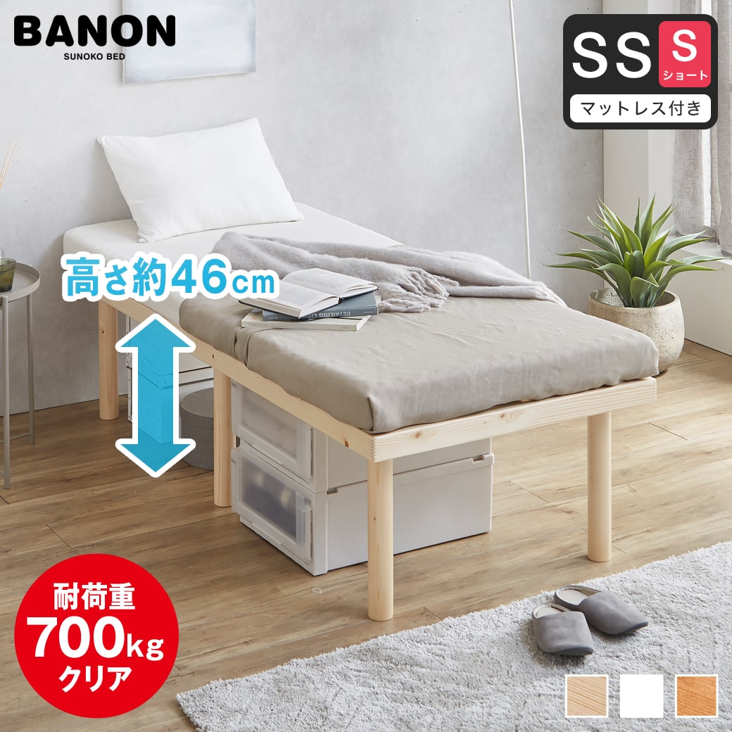 | ※本ページは三つ折りウレタンマットレスとのセット販売ページです。 ※本ページはショートセミシングルサイズの販売ページです。 ■サイズ(約): ・ベッド外寸:幅80×長さ180×高さ46cm ・各脚タイプ高さ別床面高:5.5/46cm ・マットレスサイズ:幅80×長さ180×厚さ8cm ■材質: ・ベッド:天然木パイン材(ラッカー塗装)、・ベッド:天然木積層合板 ・マットレス表面:ポリエステル100%(3Dメッシュ)/中材:ポケットコイル、ウレタン、フェルト ■耐荷重(約):350kg ■組立:組立品(大人2人15分) ※組立に必要な工具は付属しています。 ■生産国:中国製 ■梱包:・ベッド梱包数:1個口 ・ベッド梱包サイズ:82×95×12.5cm(18kg) ・マットレス梱包数:1個口 ■備考: 【NA】【WH】【BR】 ・床キズ防止フェルト付き ※設置や移動の際は必ず2人以上でフレーム長辺の中心を支えて持ち上げてください。 |