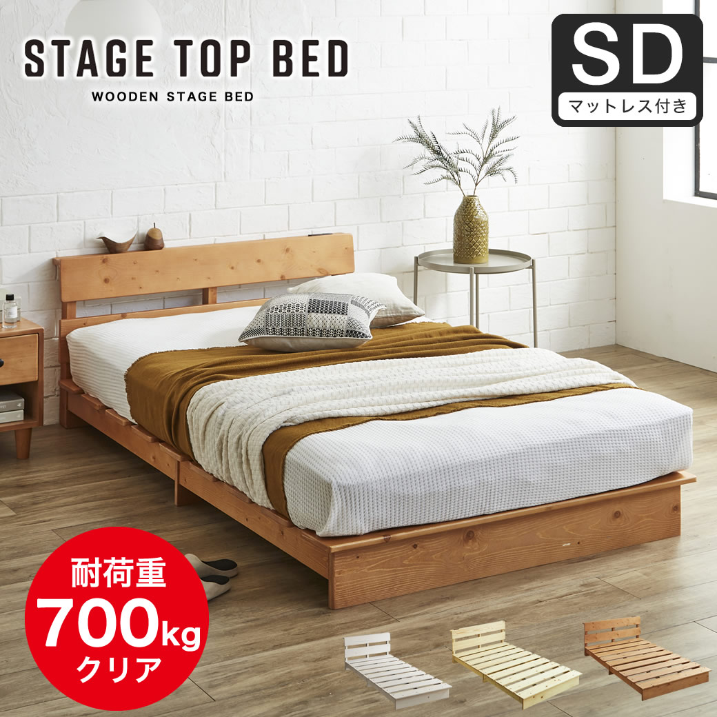 マットレスは2サイズに対応。フレームより小さいマットレスのサイズを使用すればマットレス横のステージ部分をスマートフォンや小物を置くナイトテーブルのようにお使いいただくことも出来ます。