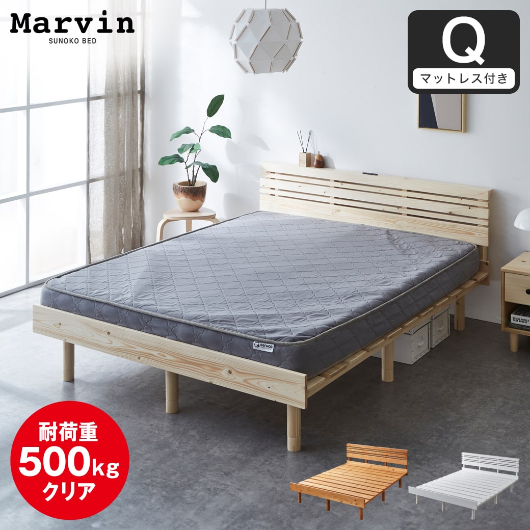 | 当社オリジナルのすのこベッド「マーヴィン」シリーズにヘッド付きタイプが登場。 厚みのある天然木の板を並べてすのこにした、ステージベッドのような雰囲気もあるデザインすのこベッドです。脚部が継脚式のため、高さ調節も可能です。 棚にはホコリが入りにくいスライドコンセントが2口付いており、スマホ等の充電もできます。 ■保証期間:1年 ■サイズ(約):・ベッド外寸:クイーン幅161×長さ207×高さ81.5/75.5/62.5cm、・各脚タイプ高さ別・床面高:32.5/27.5/13.5cm、・床面有効内寸:クイーン幅161×長さ196cm ・マットレス外寸:幅160×長さ195×厚さ15cm ■材 質:・ベッド:天然木パイン材(ラッカー塗装)、LVL ・マットレス:ポリエステル100%、ポケットコイル、ウレタン、フェルト ■耐荷重(約):250kg ■組 立:お客様組立品(大人2人約45分)、※組立の際プラスドライバーをご用意ください。 ドライバーは、付属のネジに合ったサイズのものを使用してください。 ■生産国:中国 ■梱 包:・ベッド:2個口:(2-1)166.5×33.5×22.5cm(44.3kg)(2-2)166×28.5×8.5cm(8kg) ・マットレス:1個口 ■備考: |
