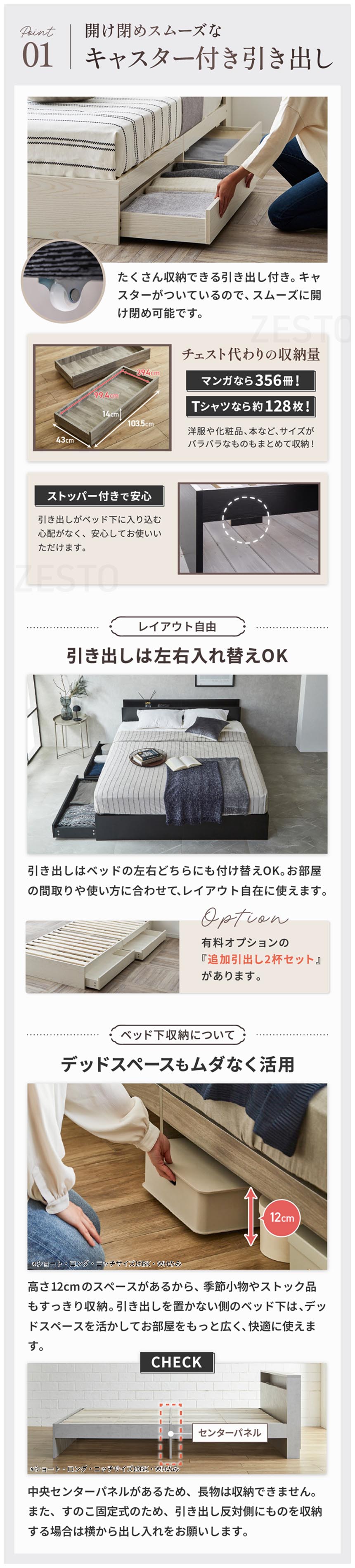 | ◆サイズ別リンク・フレーム単品 セミシングル / シングル / セミダブル / ダブル / クイーン / キング 幅90cm / 幅110cm / 幅150cm / 幅170cm セミシングルショート / シングルショート / クイーンショート セミシングルロング / シングルロング / セミダブルロング / ダブルロング / クイーンロング 棚付きZESTOシリーズ ◆フレーム単品 ◆ネルコバリューマットレス付き ◆ネルコZマットレス付き ◆スーパーハードマットレス付き ◆7 ZONEマットレス付き ◆国産交互配列ポケットコイルマットレス ◆ハイカウントマットレス付き ・ZESTOシリーズ ◆ヘッドレス・引き出し付きベッド・ZESTO ◆棚付きローベッド・ZESTO ◆スライドワゴン キャスター付き |