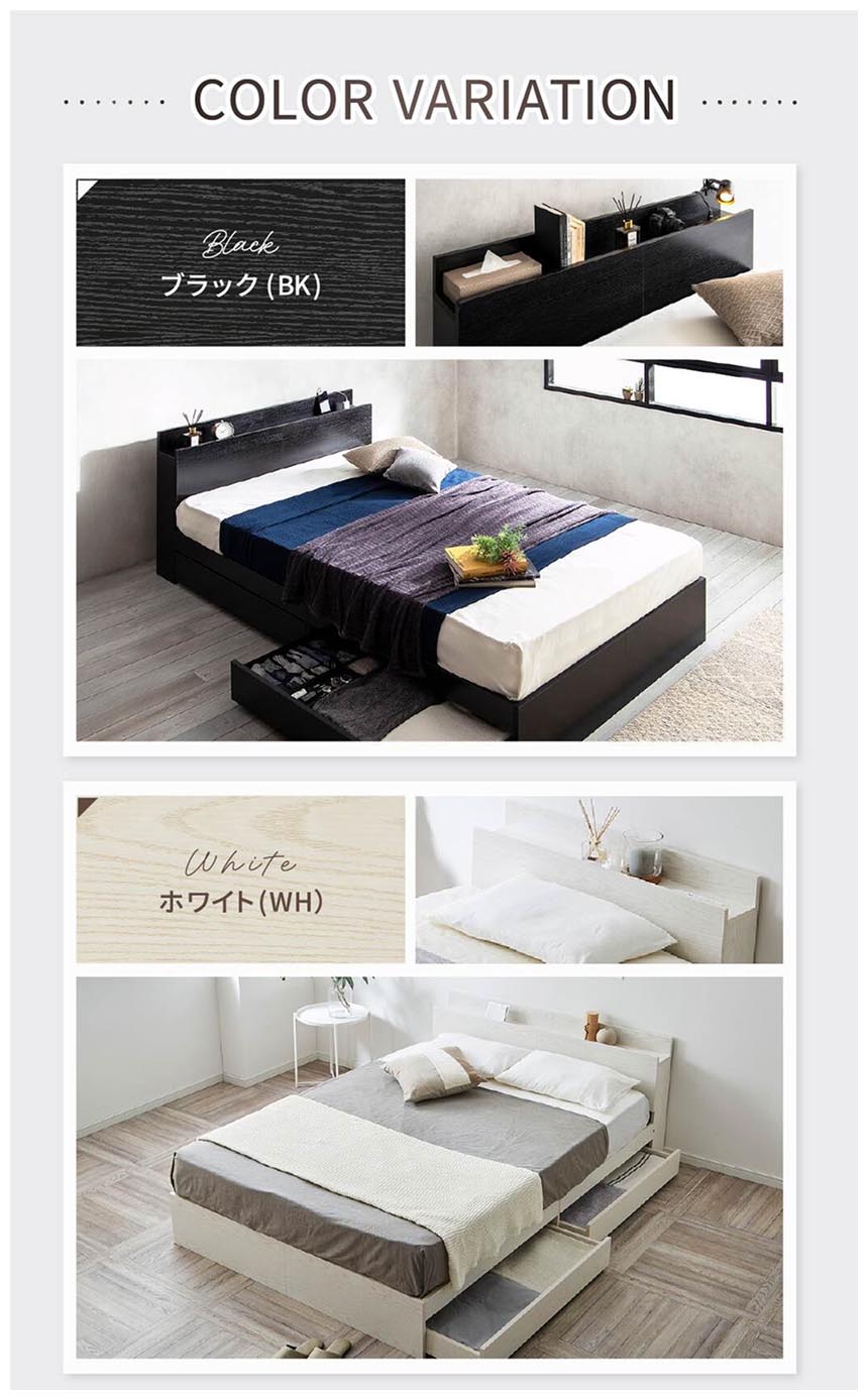 | 「機能性とデザイン性を兼ね備えた大容量収納付きベッド」 おしゃれで実用的な収納付きベッドが登場。セミシングル・シングル・セミダブルの豊富なサイズ展開。 ヘッドボードにはUSBポート1口、コンセント2口の計3口を搭載し、スマートフォンの充電も可能です。 耐水性・耐熱性・耐摩耗性に優れた「メラミン化粧板」を採用し、美しさと耐久性を両立。さらに、キャスター付きの2杯引き出し収納を備え、衣類や小物をすっきり整理でき、ベッド下を有効活用できます。 シンプルで北欧風のデザイン、充実した収納力、便利な機能が詰まったベッドです。 ■保証期間:1年 ■サイズ(約):幅97.2×奥行228.4×高さ71.8cm ベッドフレーム床面有効長さ:212.6cm、床面高26.5cm、引き出し内寸:幅99.4×奥行39.4×高さ7.7cm ■材 質:メラミン樹脂シート貼り化粧板、合板、LVLすのこ床板 ■耐荷重(約):ベッドフレーム:150kg ■組 立:フレーム:組立品(大人2人約120分) 使用工具:プラスドライバーをご用意ください。 ■生産国:中国 ■梱 包:フレーム1)幅112.5×長さ34.5×高さ20.5cm、2)幅103×長さ35.5×高さ21.5cm ■備考: ![]() ゼスト専用開梱組立設置サービス ※納期表示の異なる商品を同時に購入した場合、納期の遅い商品とまとめて発送する場合がございます。予めご了承ください。 |
