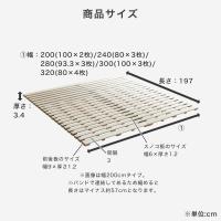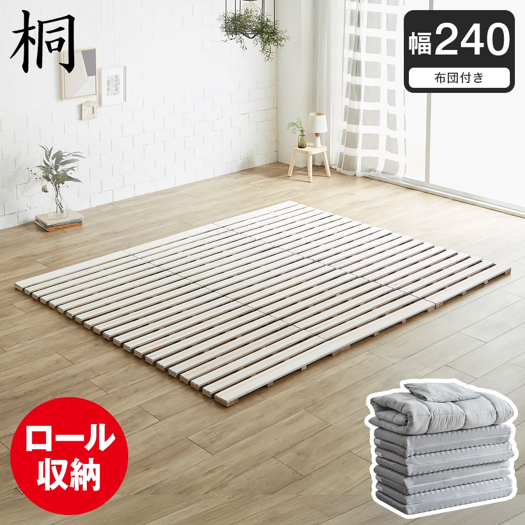 | 当社オリジナルのロール式木製すのこマット。 家族みんなでゆったり寝れる幅広いファミリーサイズが登場です。 桐材を使用したシンプルなすのこながらも、使い勝手のいい工夫が詰まった快眠アイテムです。 お部屋の床に布団やマットレスを直置きするのではなく、桐すのこマットを1枚挟むだけで、寝具の通気性が改善し、不快なカビやダニ、また冬の結露の発生を抑制します。 ■保証期間:1年 ■サイズ(約):・ベッド外寸:幅240(80×3枚)×長さ197×高さ3.4cm(※バンドで連結してあるため縮めると長さはマイナス57cmとなります。) ・敷布団外寸:幅240(100+140)×長195×厚さ12cm(ボックスシーツのマチ14cm、敷きパッドの厚さ5cm、ウレタンマットレスの厚さ7cm) ■材 質:【ベッド】 天然木桐材(無塗装) 【ボックスシーツ】 ・ポリエステル100% 【敷パッド】 ・側生地:ポリエステル100% ・中わた:ポリエステル100%(防ダニ抗菌防臭わた) 【敷き布団】 ・側生地:ポリエステル100%、ハニカムメッシュ生地 ・詰め物:高反発プロファイルウレタン(密度:34D、復元率:97.8%、硬さ:230N) 厚み:7cm ■耐荷重(約):100kg ■組 立:完成品 ■生産国:中国 ■梱 包:・ベッド:1個口:(1-1)39×44×82cm(16kg) ・布団:1個口 ■備考:※納期表示の異なる商品を同時に購入した場合、納期の遅い商品とまとめて発送する場合がございます。予めご了承ください。 |