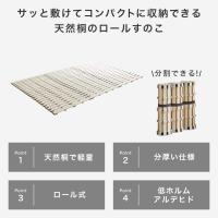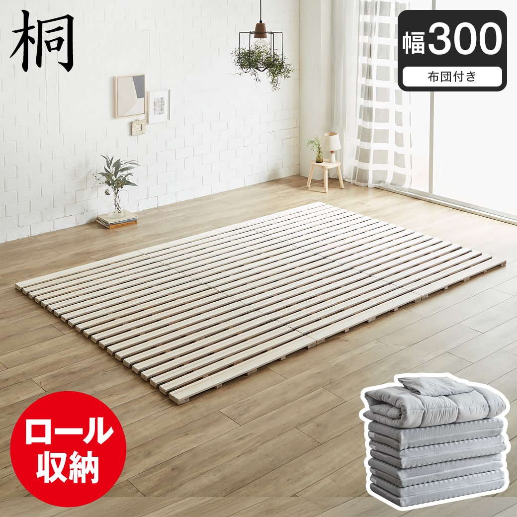 | 当社オリジナルのロール式木製すのこマット。 家族みんなでゆったり寝れる幅広いファミリーサイズが登場です。 桐材を使用したシンプルなすのこながらも、使い勝手のいい工夫が詰まった快眠アイテムです。 お部屋の床に布団やマットレスを直置きするのではなく、桐すのこマットを1枚挟むだけで、寝具の通気性が改善し、不快なカビやダニ、また冬の結露の発生を抑制します。 ■保証期間:1年 ■サイズ(約):・ベッド外寸:幅300(100×3枚)×長さ197×高さ3.4cm(※バンドで連結してあるため縮めると長さはマイナス57cmとなります。) ・敷布団外寸:幅300(140+160)×長195×厚さ12cm(ボックスシーツのマチ14cm、敷きパッドの厚さ5cm、ウレタンマットレスの厚さ7cm) ■材 質:【ベッド】 天然木桐材(無塗装) 【ボックスシーツ】 ・ポリエステル100% 【敷パッド】 ・側生地:ポリエステル100% ・中わた:ポリエステル100%(防ダニ抗菌防臭わた) 【敷き布団】 ・側生地:ポリエステル100%、ハニカムメッシュ生地 ・詰め物:高反発プロファイルウレタン(密度:34D、復元率:97.8%、硬さ:230N) 厚み:7cm ■耐荷重(約):100kg ■組 立:完成品 ■生産国:中国 ■梱 包:・ベッド:1個口:(1-1)38×42×102cm(21kg) ・布団:1個口 ■備考:※納期表示の異なる商品を同時に購入した場合、納期の遅い商品とまとめて発送する場合がございます。予めご了承ください。 |