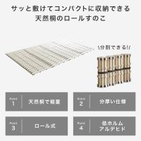 | 当社オリジナルのロール式木製すのこマット。 家族みんなでゆったり寝れる幅広いファミリーサイズが登場です。 桐材を使用したシンプルなすのこながらも、使い勝手のいい工夫が詰まった快眠アイテムです。 お部屋の床に布団やマットレスを直置きするのではなく、桐すのこマットを1枚挟むだけで、寝具の通気性が改善し、不快なカビやダニ、また冬の結露の発生を抑制します。 ■保証期間:1年 ■サイズ(約):・ベッド外寸:幅320(80×4枚)×長さ197×高さ3.4cm(※バンドで連結してあるため縮めると長さはマイナス57cmとなります。) ・敷布団外寸:幅320(160+160)×長195×厚さ12cm(ボックスシーツのマチ14cm、敷きパッドの厚さ5cm、ウレタンマットレスの厚さ7cm) ■材 質:【ベッド】 天然木桐材(無塗装) 【ボックスシーツ】 ・ポリエステル100% 【敷パッド】 ・側生地:ポリエステル100% ・中わた:ポリエステル100%(防ダニ抗菌防臭わた) 【敷き布団】 ・側生地:ポリエステル100%、ハニカムメッシュ生地 ・詰め物:高反発プロファイルウレタン(密度:34D、復元率:97.8%、硬さ:230N) 厚み:7cm ■耐荷重(約):100kg ■組 立:完成品 ■生産国:中国 ■梱 包:・ベッド:1個口:(1-1)39×56×82cm(24kg) ・布団:1個口 ■備考:※納期表示の異なる商品を同時に購入した場合、納期の遅い商品とまとめて発送する場合がございます。予めご了承ください。 |