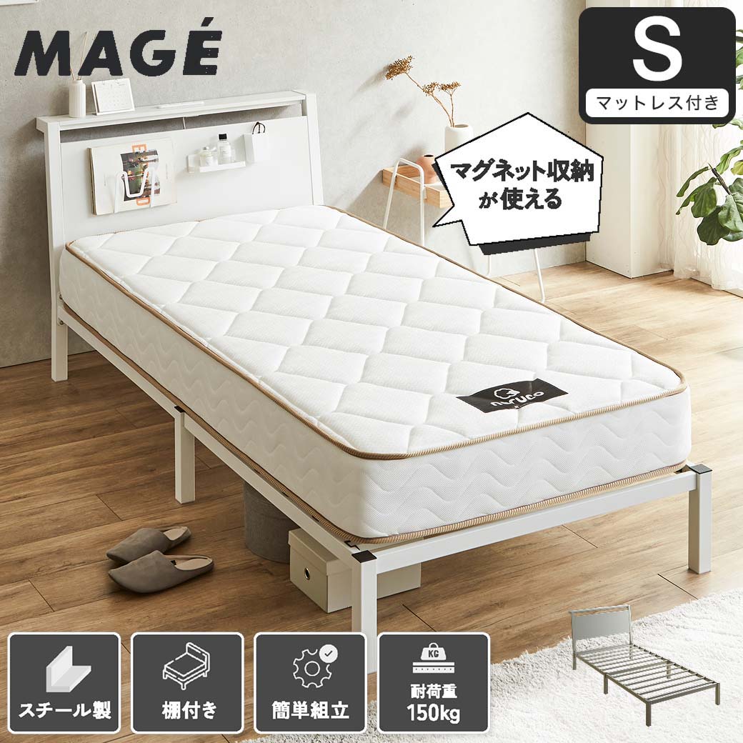 | 自由にアレンジできるスチール製ヘッドボードが魅力の「マグネット対応ベッド」。お気に入りのグッズや小物をマグネットで飾れる“見せる収納”で、自分だけの特別な空間を演出します。USBポート+2口コンセント付きでスマホ充電も快適。シンプルなデザインだからどんなお部屋にも馴染み、ベッド下は広々とした収納スペースとして活用可能。女性でも簡単に組み立てられる設計で、機能性とデザイン性を両立した新しいスタイルのベッドです。 ■保証期間:1年 ■サイズ(約):幅97×奥行214×高さ83.5cm 床面有効サイズ:幅97×長さ195×高さ25cm コードの長さ:1.8m 【マットレス】幅97×長さ195×厚さ23cm ■材 質:【ベッドフレーム】スチール、メラミン樹脂シート張り化粧板 AC100V 2 口 /USB ポート1 口 【国産交互配列マットレス】 材質:表面生地:ポリエステル100% 中綿:ポリエステル100%(テイジン マイティトップ2抗菌防臭防ダニわた入り) 中材:ポケットコイル、ウレタンフォーム、不織布、コイル線径:2.1mm、2.2mm ■耐荷重(約):150kg ■組 立:お客様組立品(2名約60分) ■生産国: ベッドフレーム:中国、国産交互ポケット:日本 ■梱 包:ベッドフレーム1個口:(1-1)13×42×105cm(25kg) マットレス1個口:(1-1)34×34.5×101cm(25.6kg) ■備考:※納期表示の異なる商品を同時に購入した場合、納期の遅い商品とまとめて発送する場合がございます。予めご了承ください。 |