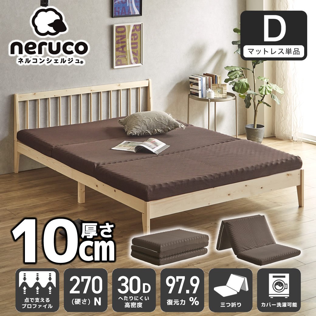 | ネルコンシェルジュオリジナルの三つ折りウレタンマットレス 耐久性に優れ、寝心地が長く続きやすい「密度:30D(高密度タイプ)」。 プロファイルウレタンを採用し、カラダをしっかり支えます。 安定感のある寝心地を実現。寝返りがしやすく、理想的な体圧分散で自然な寝姿勢をサポートします。 10cmの適度な厚みで、ベッドやフローリング、すのこマットの上でも底付き感がなく快適に使用できます。 側生地は通気性の良いメッシュ素材を採用し、蒸れにくく快適な環境をキープします。さらにL型ファスナー使用で開閉可能、中材を取り外して洗濯できお手入れも簡単。いつでも清潔に保てます。 また、三つ折り&コンパクト設計で、収納や持ち運びに便利。ロフトベッドや来客用マットレス、新生活や一人暮らしにも最適な一枚です。 ■保証期間:1年 ■サイズ(約):・外寸:幅140×長さ195×厚さ10cm ■材 質:・側生地:ポリエステル100% ・中材:ウレタンフォーム(重量:約6.1kg) (密度:30D/硬さ:270N/復元率:97.9%) ■生産国:中国 ■重量(約):7.5kg ■梱 包:1個口:34×34×73cm(8.5kg) ■備考: |