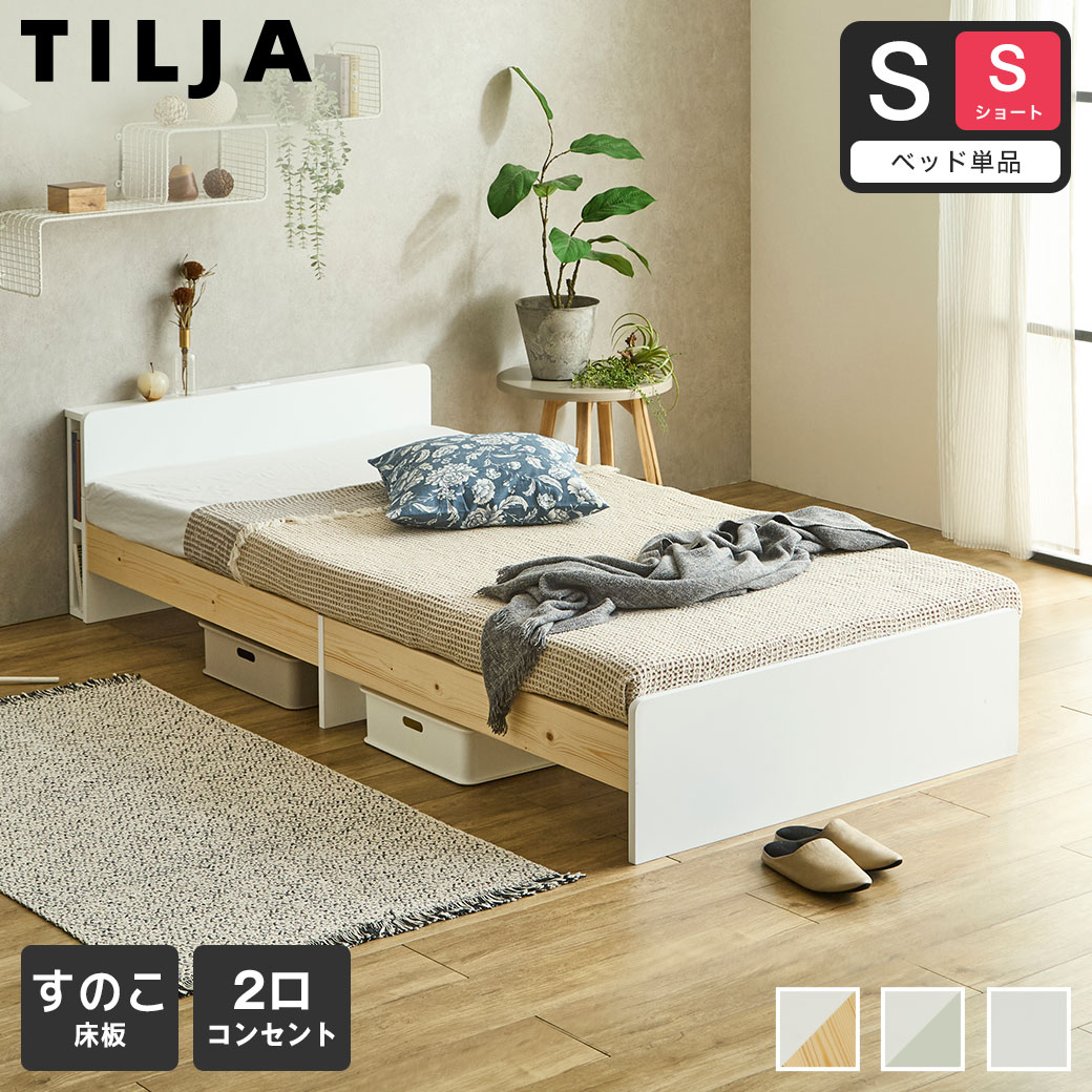 ベッド ティリア すのこベッド 棚付きベッド シングルショート ベッドフレーム 木製 棚付き コンセント 【ショートサイズ】ツートンカラー