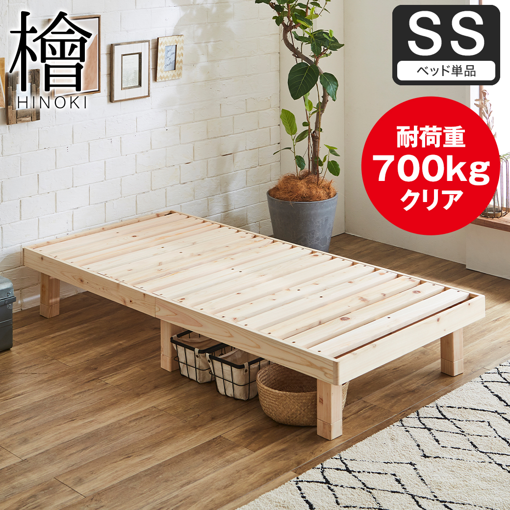 | フレーム・すのこも檜材を使用 檜すのこベッド セミシングル ヘッドレスタイプ 木製ベッド フレームのみ 国産檜を贅沢に使用した 天然木檜ベッド 総檜 床面高さ4段階調節 湿気を上手に逃がす、すのこ床板 スノコベッド シングルベッド マットレスでも布団でも使いやすい 丈夫なベッド 檜特有の芳香が楽しめるひのきベッドです。 ■サイズ(約): 幅80×奥行197.6×高32cm 床面高4段階(約):32、26.3、13.2、8.6cm ■材質: 天然木ひのき材(無塗装) ■組立:お客様組立品(大人2人40分) ■生産国:企画:日本 生産国:ベトナム ■床面静止耐荷重:(約)350kg ■梱包:1個口 1-1)99×42.5×18.5cm(22kg) ■備考: ※こちらの商品は「檜すのこベッド」の販売ページとなっております。商品説明写真に使われている小物類等は、商品に含まれておりません。 ・ ・ ※天然木を使用している為、節がございます。ひのき天然木の素材の良さ、味わいとしてご理解下さい。 ・冷暖房器具の風が直接当たらないよう注意してください。(変形、カビなどの原因となります) 【新】36190503 |