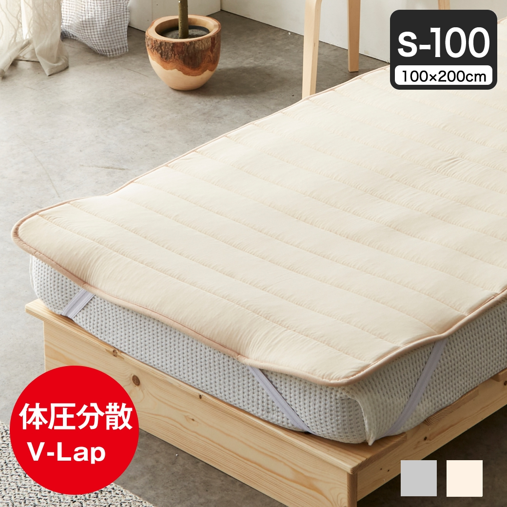 テイジンの高機能繊維「V-Lap(R)」を中綿に使用した敷きパッドです。V-Lap(R)が持つ高反発性により、優れた弾力性と体圧分散性を発揮します。