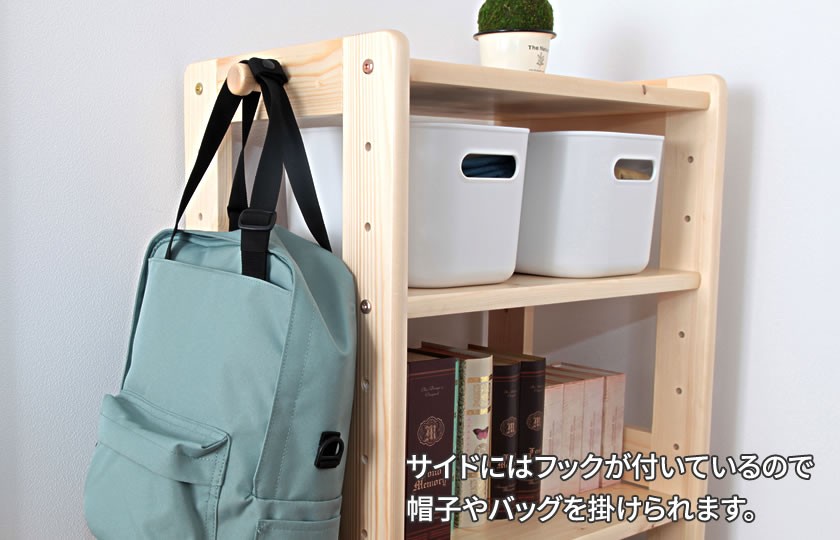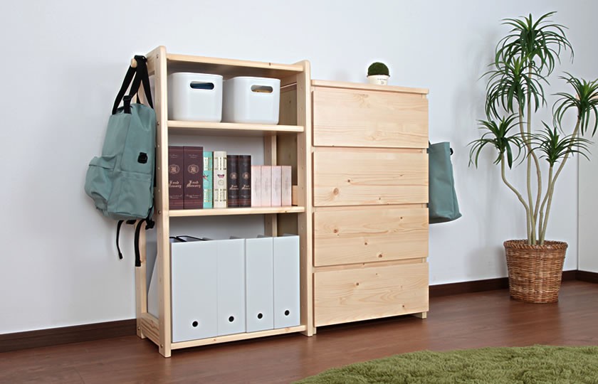 肌に触れた時に感じる優しさ、温もりは天然木だからこそ。上質な素材を使用しているのでお子様が小さい時はもちろん、大きくなってからもお使いいただけます。インテリアにこだわりたい年齢になっても変わらず愛用いただけるシンプルなデザイン、用途を限定しないオープンタイプのラックなのでどこにでも設置しやすく、他の家具との相性も抜群。時間とともに変化する天然木の味わい深さを小さな頃から感じていただけます。