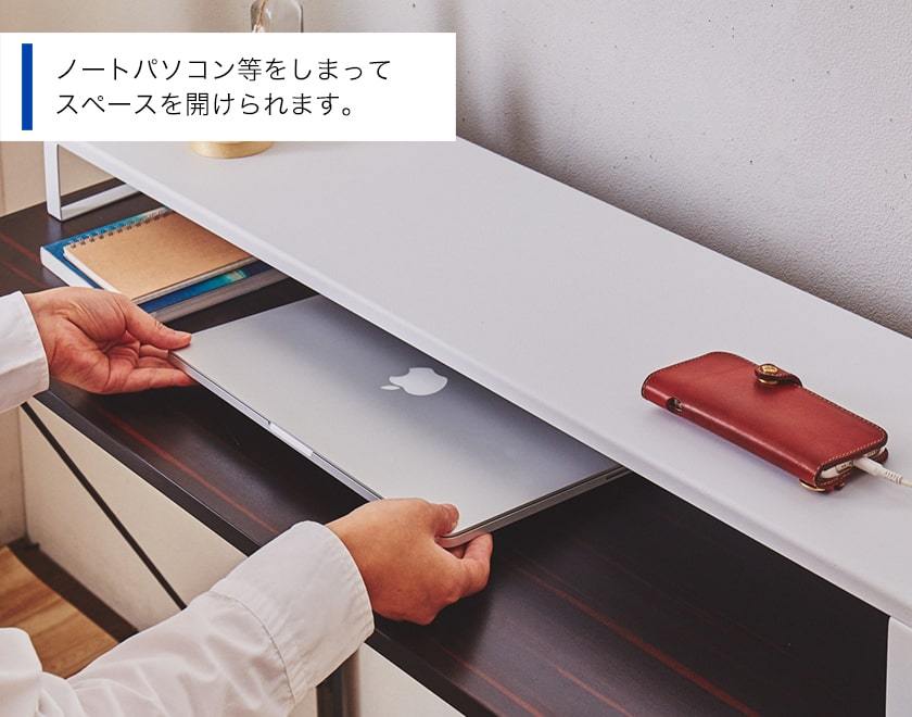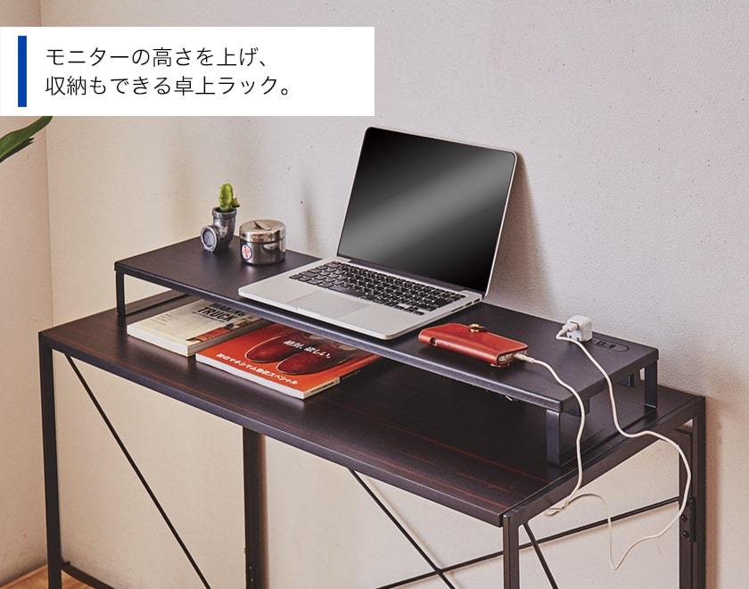 PCモニターの高さを上げられるだけでなく、下に収納スペースを作れる便利な卓上ラック。