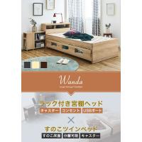 キャスター式のオープンシェルフは本や小物を収納できて便利です。ヘッド本体の棚も、一般的な棚付きベッドの棚よりも奥行が深く、さらにモノを置いておけます。また、コンセントが2口に加え、USBポートも付いているため、スマホやノートパソコン等の充電にも便利です。